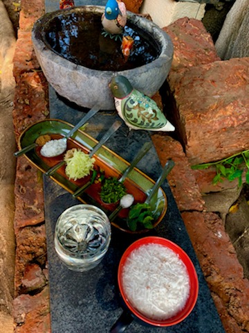 1. कैरीचे साल काढून कैरीचा कीस करून ठेवायचा, नारळाचे दूध मिक्सर मधून काढून गाळून घ्यायचे, मिरची, आल, कोथिंबीर, मिरची, पुदिना यांची पेस्ट करायची. जीरे पूड करून ठेवायची.