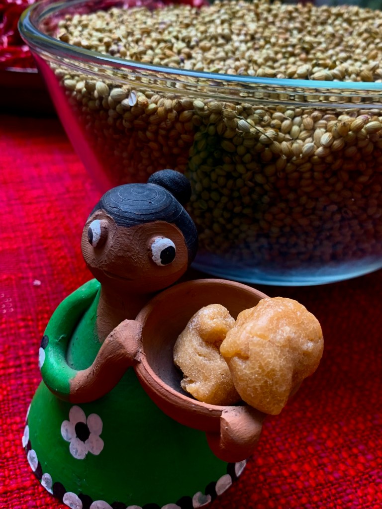 - वरील सर्व मसाल्याचे पदार्थ एकत्र करून ठेवावेत पण तीळ आणि खोबरे डंखात वाटायला देताना वेगळे द्यावेत.