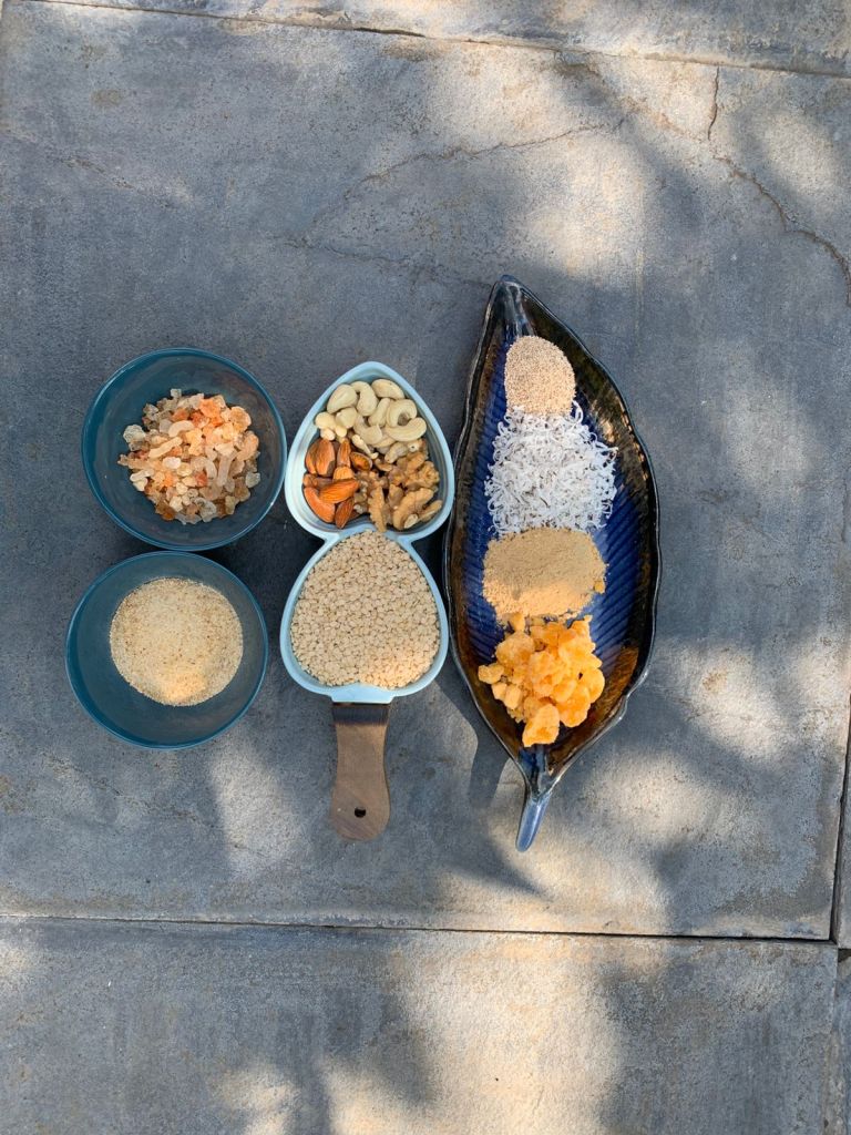 एक वाटी उडीद डाळ, अर्धी वाटी डिंक, एक वाटी सुकामेवा (बदाम, काजू, अक्रोड), अर्धी वाटी खारीक पूड, दोन चमचे खसखस, दोन चमचे सुंठ पूड, एक वाटी बारीक केलेला गूळ, चार चमचे सुखे खोबरे, अर्धी वाटी तूप, एक चमचा जायफळ पूड.